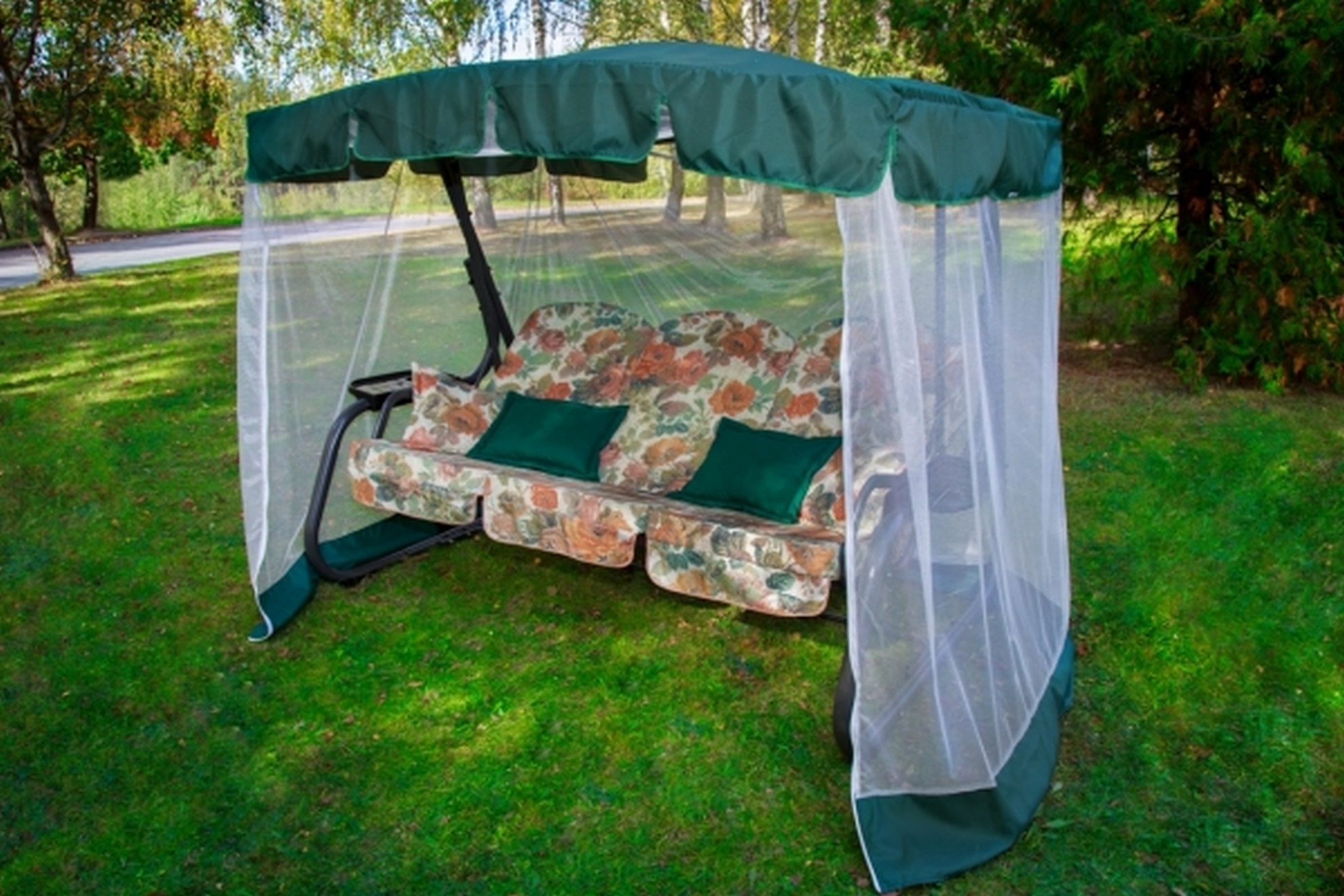 Садовые качели для дачи Turin ПРЕМИУМ, 3-х местные зеленые