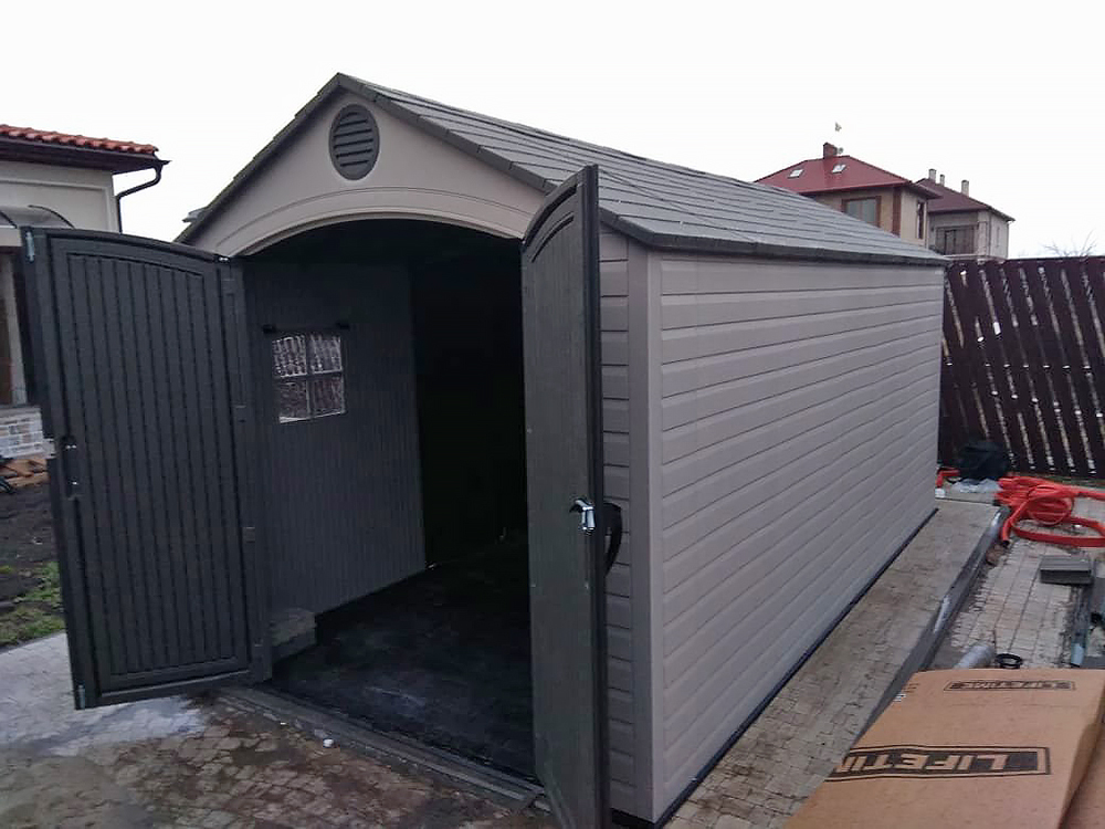 Пластиковый сарай Lifetime на садовом участке
